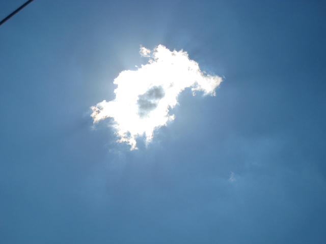 写真は、泉南沖航行中 快晴の天頂付近 太陽だけ隠した小さな雲。