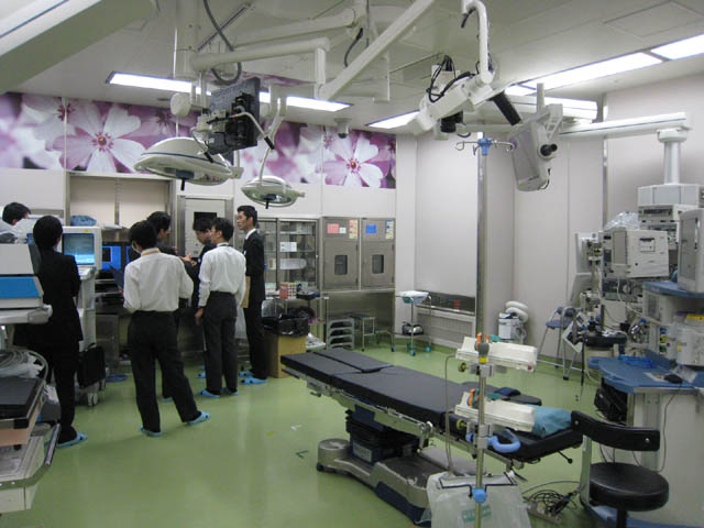 写真は、手術室内で接続試験中の弊社MWM担当者とモダリティーメーカー