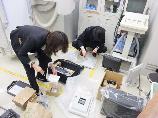 写真は、関東方面の市民病院に簡易RISの導入設置調整。