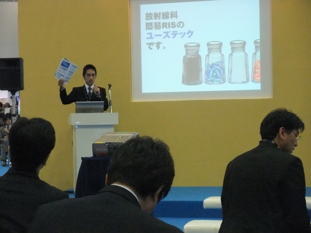 写真は、JIRA企画コーナーで簡易RISの紹介をする、宮崎営業部長