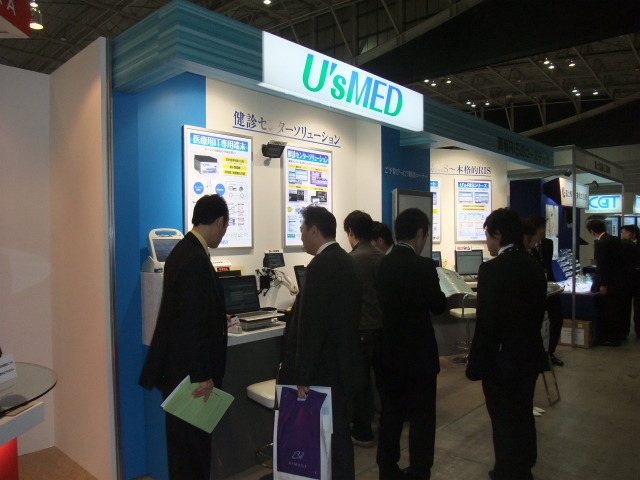 写真は、JIRAの企画コーナーでの 健診ソリューション〜バス受付の
