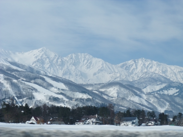 写真は、八方尾根から、検定の行われる五竜とおみスキー場いいもりゲレンデ