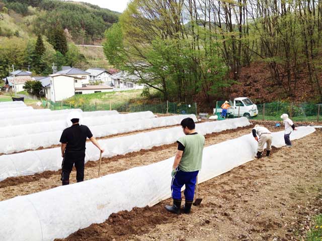 カボチャ畑の植え付けのお手伝いをした。