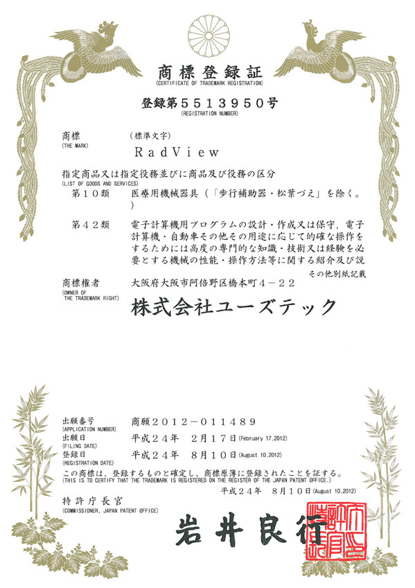 商標登録 RadView現在販売している「RadView」の商標が登録されました。