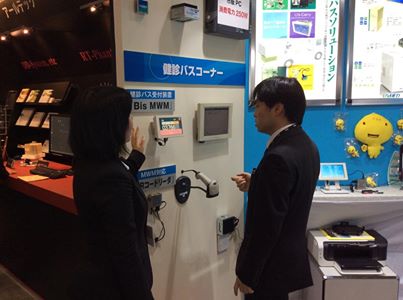 2014 国際用画像総合展検診バスの放射線検査受付システムの説明をする。