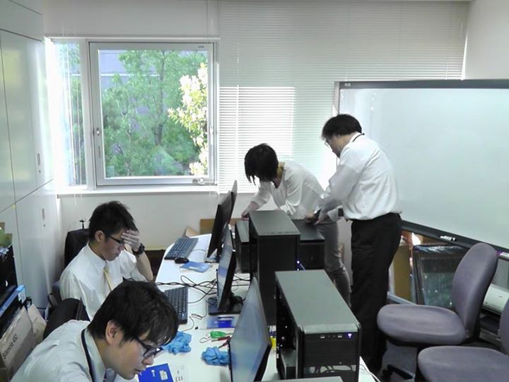 4月27日 朝から、日本橋へパーツの購入に行き、実際にPCパーツが売られている現場を体験。そこで購入したパーツを社内に持ち帰って、各自で組み立て〜OSセットアップ。